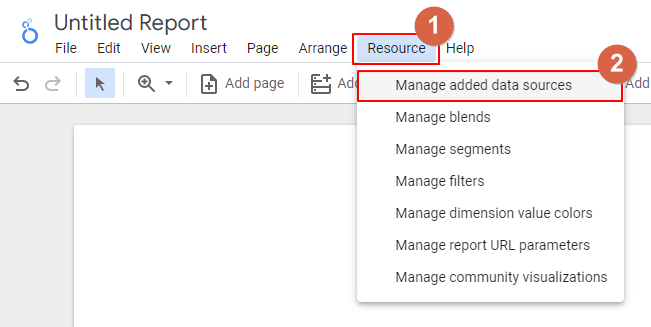 6-2. 建立完成後,再回到 Looker Studio 報表,選擇上方工具列的「資源 (Resource) \ 管理已新增的資料來源 (Manage added data sources)」