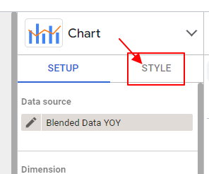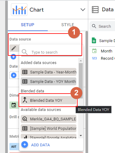 13. 再來我們調整一下資料來源,首先資料來源要選擇我們剛剛建立的混合資料,此範例為「Blended Data YOY」